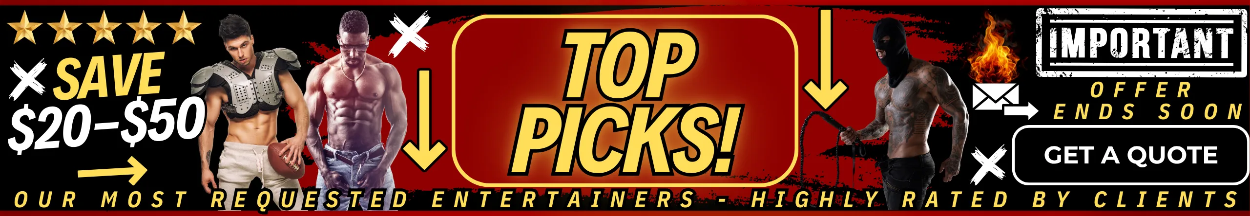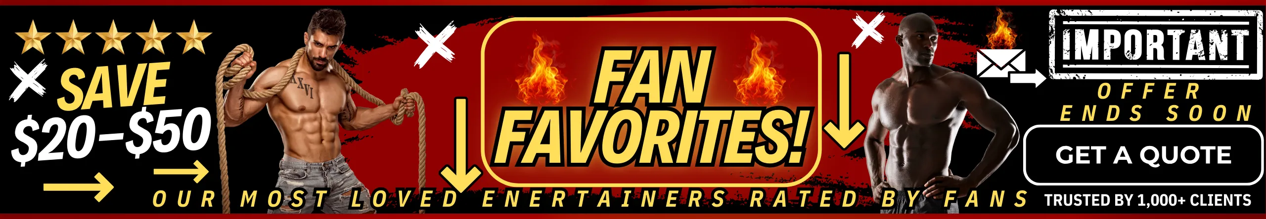 Looking to hire professional Male Butlers for your next celebration? Our elite male butlers are available for bachelorette parties, despedidas de soltera, ladies’ nights, girls’ night out, birthday parties, divorce parties, LGBTQ+ events, and private parties nationwide. We also offer upscale party services including male butlers, cabana boys, shirtless bartenders, and sip & paint male models, all carefully selected for their looks, personality, and professionalism. Whether you’re booking one entertainer or a full male revue experience, we make it easy to find the best male entertainers near you for a fun, stylish, and unforgettable event.